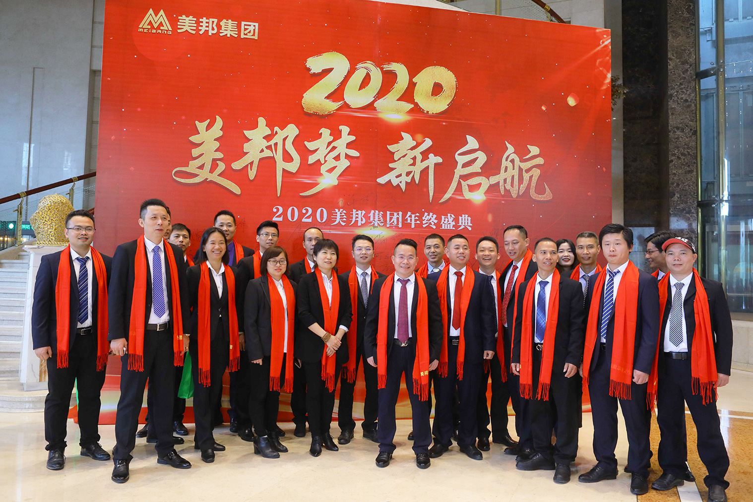 Group headquarters management and all department leaders sign in for a group photo